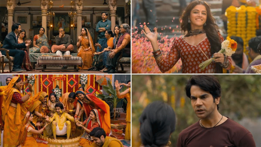 राजकुमार राव हमेशा की तरह अच्छा काम करते हैं। वो रंजन तिवारी के रोल में फिट बैठते हैं। उनका बनारसी अंदाज़ और बोलने का तरीका अच्छा लगता है।वामीका गब्बी का किरदार भी मजबूत है। वो तितली के रोल में है – एक ऐसी लड़की जो अपने हक के लिए लड़ना जानती है।सीमा पाहवा, रंजन की माँ के रोल में हैं। वो अचार बेचती हैं और अपने घर को संभालती हैं। उनका अभिनय शानदार है।रघुवीर यादव, रंजन के पापा बने हैं। वो ज़्यादातर टाइम छत पर बैठे रहते हैं और दोस्तों के साथ मस्ती करते रहते हैं।संजय मिश्रा और इष्टियाक़ खान जैसे अच्छे कलाकार भी फिल्म में हैं, लेकिन उन्हें ज़्यादा करने का मौका नहीं मिलता।