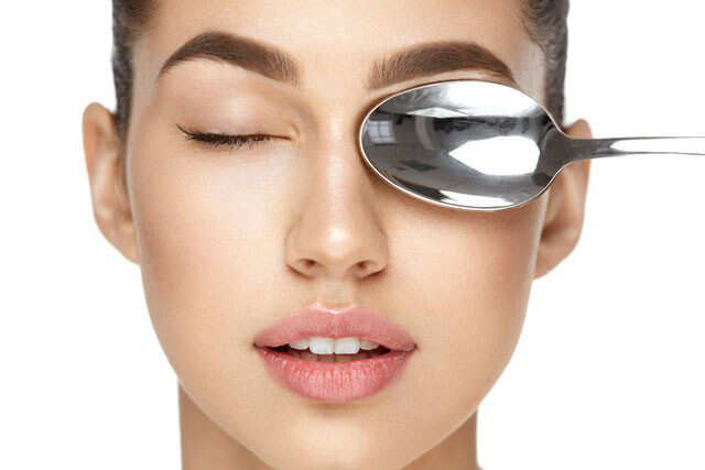 2. फिर इन ठंडे चम्मचों को बाहर निकालें और बहुत ही हल्के हाथों से अपनी दोनों आंखों पर रखें।