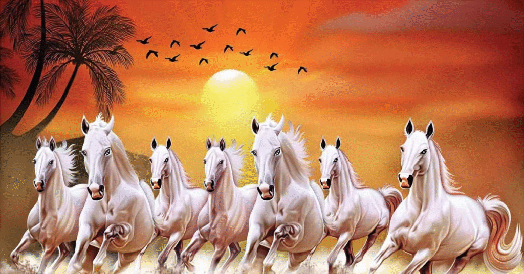 Seven Horses Painting Vastu: क्या आपने कभी सोचा है कि घर में एक तस्वीर लगाकर आपकी किस्मत पलट सकती है? सुनने में अजीब लग सकता है, लेकिन वास्तुशास्त्र में सात दौड़ते घोड़ों की तस्वीर (Seven Horses Painting Vastu) को बहुत ही शुभ और सकारात्मक माना गया है। अगर आप भी चाहते हैं कि आपके जीवन में खुशियाँ, सफलता और तरक्की आए, तो अपने घर या ऑफिस में Seven Horses Painting जरूर लगाएं।